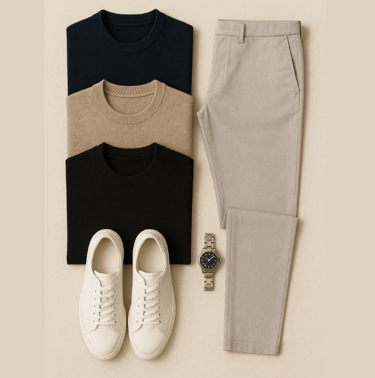 Selecione 16 peças estratégicas para cria 280 combinações que funcionam no dia a dia real: trabalho, rolê, compromissos, o que for.